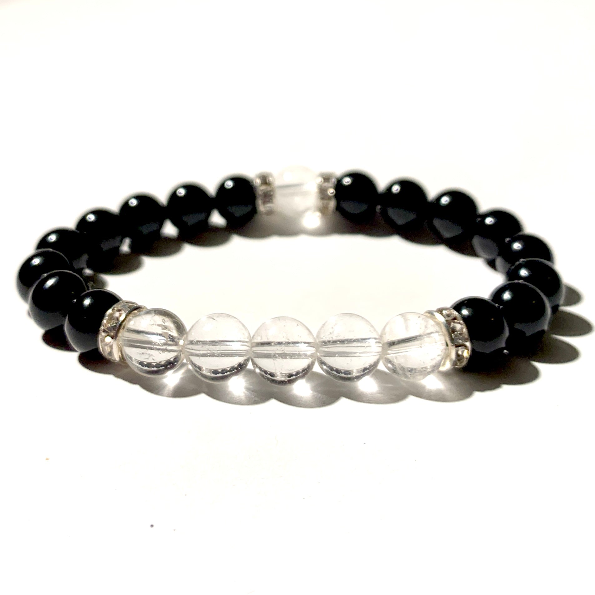 Harness the power of clarity with this Clear Quartz Beaded Bracelet, your stylish stand-in for April’s birthstone. Paired with bold onyx beads, it’s like wearing a little pocket of pure energy and sass—perfect for those who want to keep their vibes crystal clear while silently judging the chaos around them. Who needs tradition when you look this good?