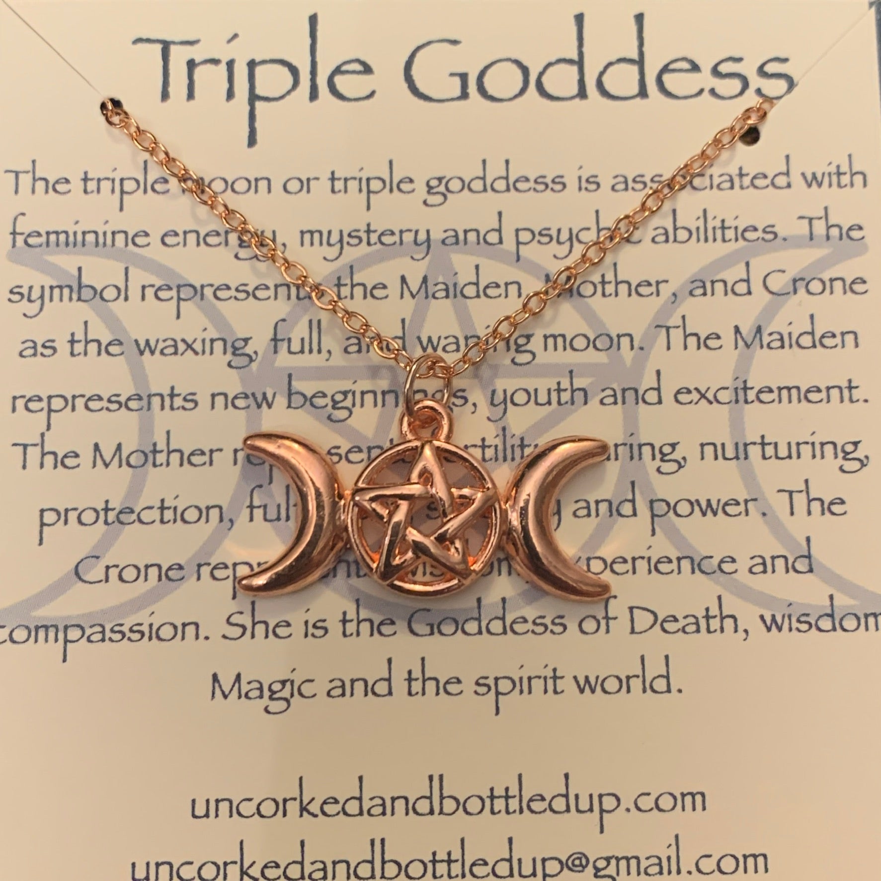 Embody the power of the Triple Goddess with this striking amulet pendant, featuring the Triple Moon symbol that honors the Maiden, Mother, and Crone. Perfect for those drawn to witchy, pagan energies, this pendant channels feminine wisdom, transformation, and protection. Wear it as a bold talisman connecting you to ancient goddess magic and the sacred power of the pentagram.